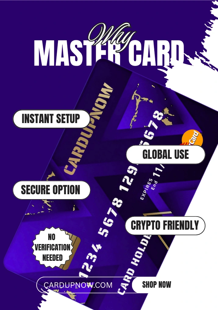 Get an instant Mastercard Virtual Card with CardUpNow. No long waits, fast issuance, and flexible funding options including crypto. Sign up today and start spending smart, safe, and global.
